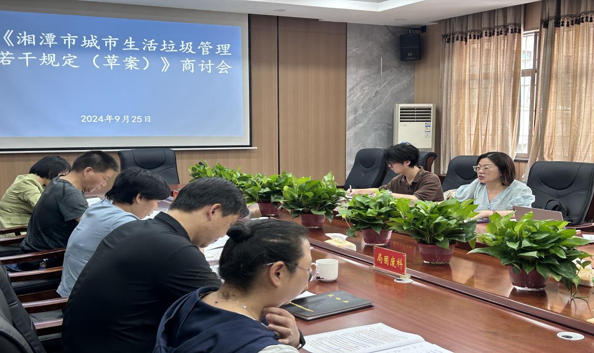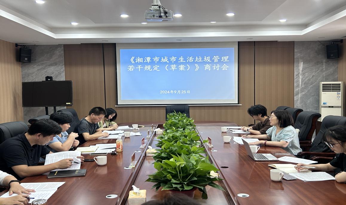 2024年9月25日下午,《湘潭市城市生活垃圾管理若干规定》草案商讨会在湘潭市环境卫生管理处召开,湘潭市城管局、司法局、环卫处,色色动漫副院长宋智敏教授、研究生谢沁颐、任郎、向诚组成的立法团队出席了本次会议。