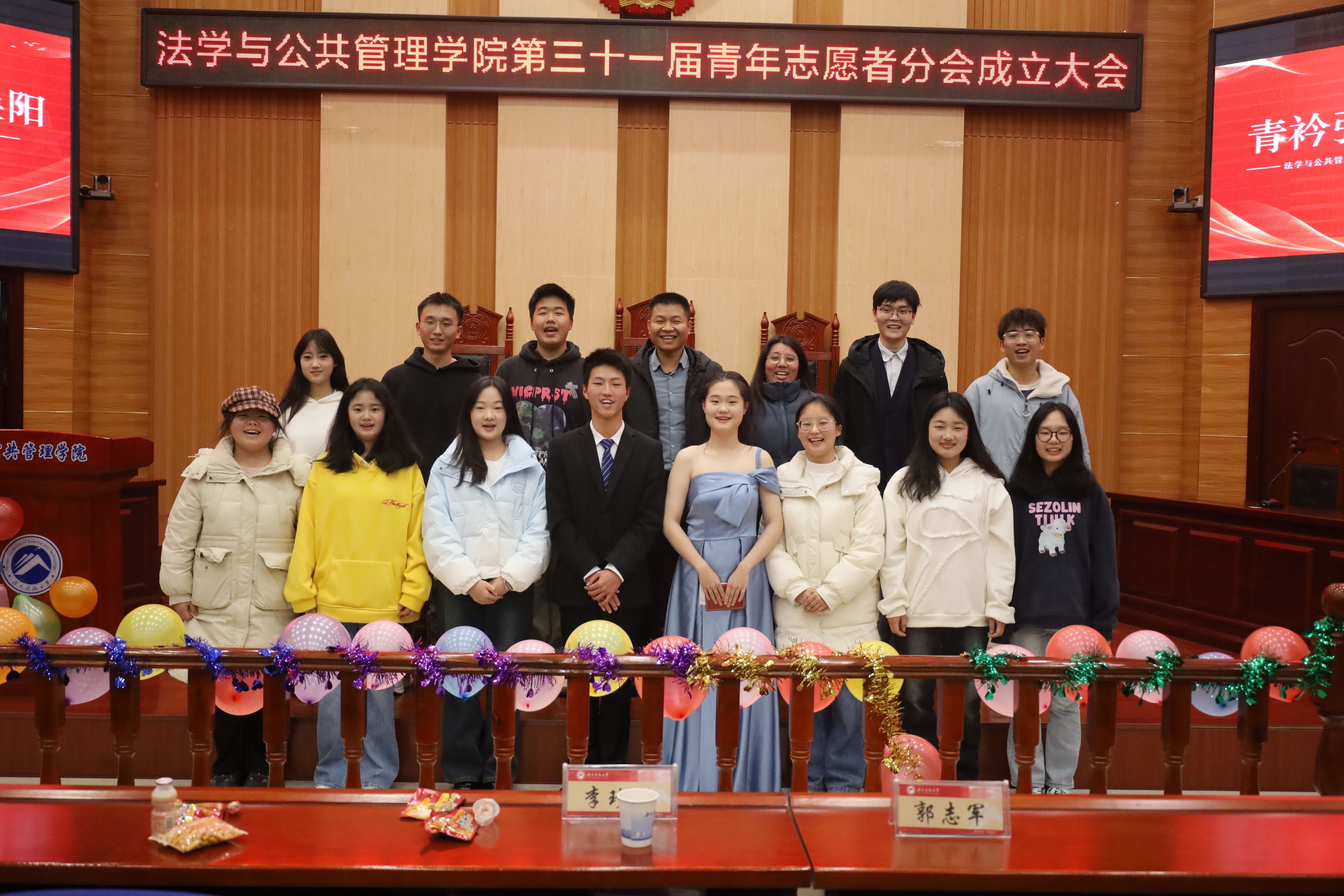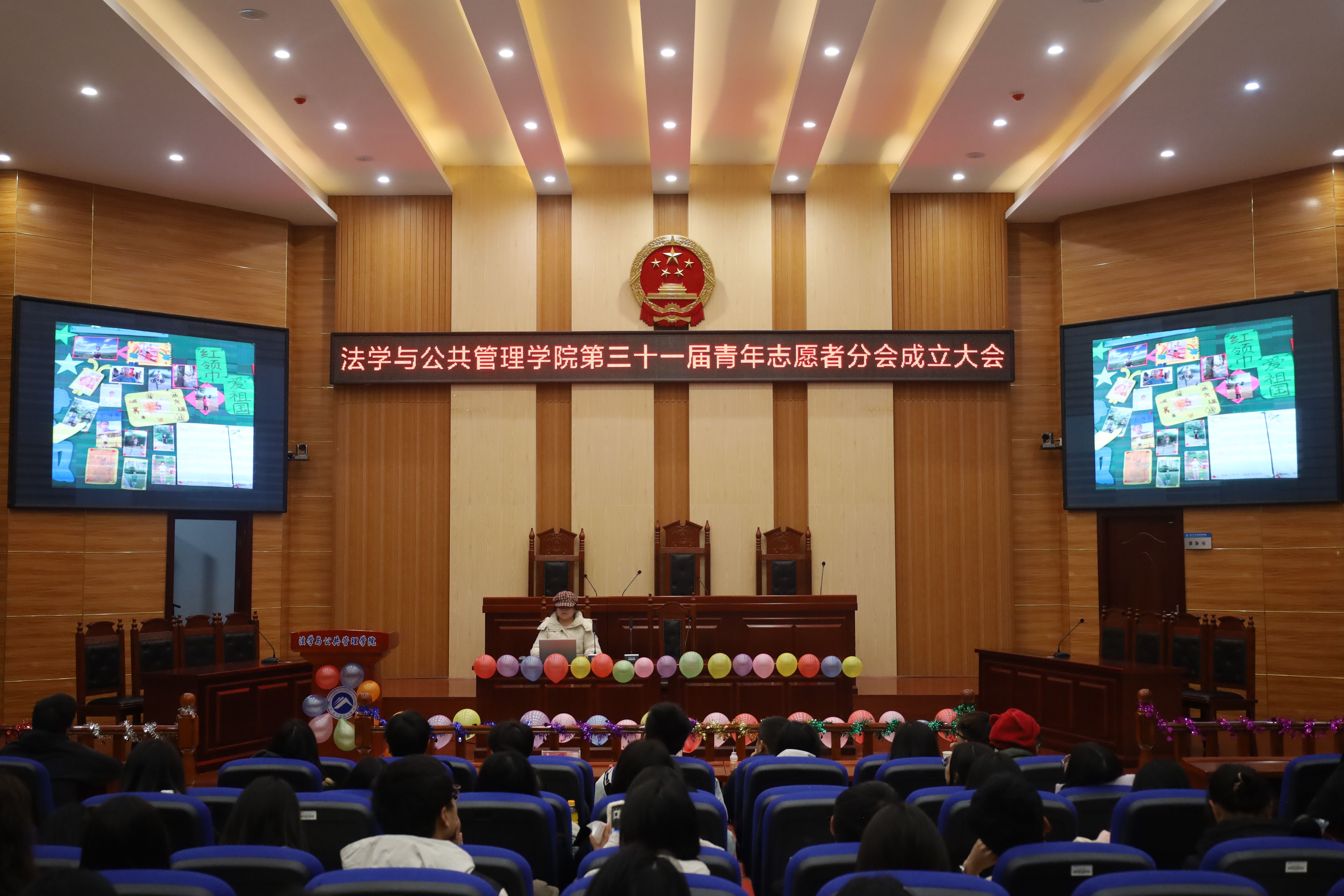 青年志愿者分会成立大会于12月20日晚在立言楼模拟法庭举行,院党委副书记范军豪,学工办主任郭志军、院团委书记兼24级辅导员李珍妮出席本次活动。