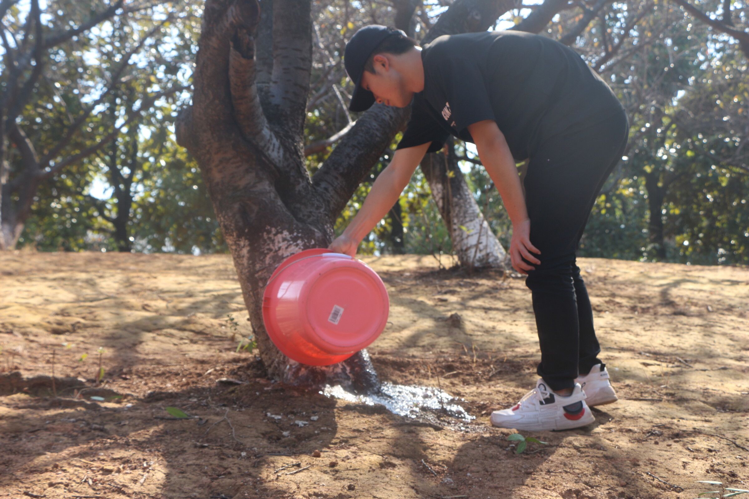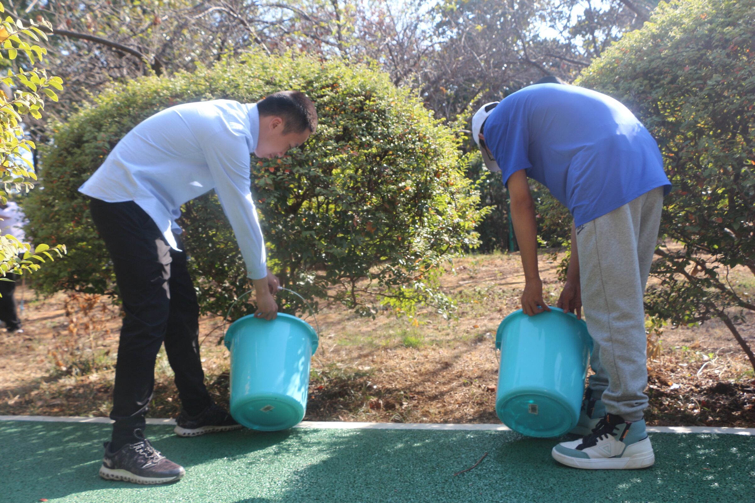 下午2时,在各班班团的协调组织下,各班学子在指定场地集合完毕。活动伊始,法管学院党委副书记叶军对此次实践活动各年级的任务做出说明。其后,随着叶书记一声令下,各班学生闻声而动,迅速投入到劳动之中,开始了热火朝天的实践活动。同学们大致分成两批,一批在洒水车旁有序排队接水为浇树做准备,另一批用提前准备好的扫帚、簸箕和垃圾袋打扫路上及草丛中的垃圾。浇树的同学们化身“护树使者”,一手环抱着装满水的盆子,另一手则舀盆中水浇向树,在水的滋润下,原本灰沉沉的树叶以肉眼可见的速度变得油亮,焕发出勃勃生机;负责拾捡白色垃圾的同学们则不顾累,不管脏,使出自己火眼金睛的技能,不放过任何一处地方、任何一点垃圾,让草地成为一片纯粹的绿。
