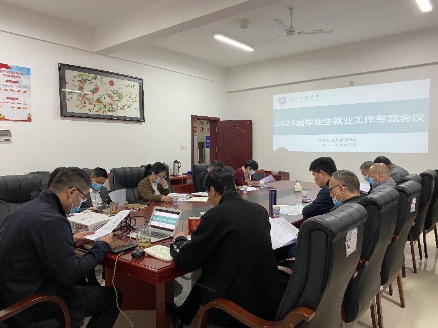 在立言楼A427会议室召开2022届毕业生就业工作专题会议。院党委书记邱帅萍、副书记叶军、副院长宋智敏和王明、法律服务中心主任马驰升、系主任、硕士点负责人、毕业班班主任和学工办辅导员参加。