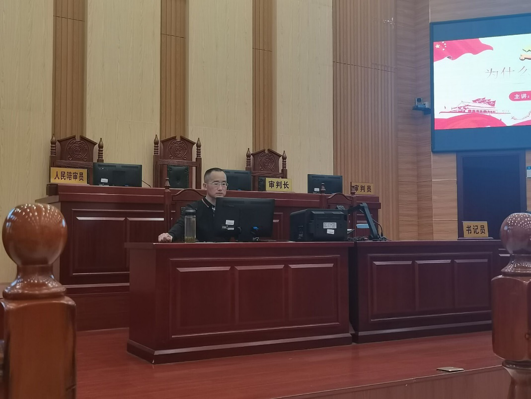 院长徐德刚教授在立言楼模拟法庭以一名36年党龄的老党员身份为入党积极分子讲授了一次题为“为什么要入党”的党课,全体学员认真聆听了徐院长的授课。