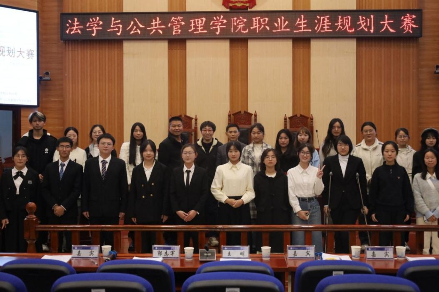 主办的大学生职业生涯规划大赛在立言楼3-2模拟法庭圆满举行。