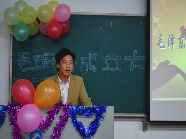 党委副书记叶军老师、团委第一副书记龙志斌、法律协会会长吴志花等人出席,毛研会13级新生全体参加。 大会伊始,毛研会会歌《东方红》奏响全场,正式拉开大会序幕。接着,毛研会副理事刘晓娜上台,带领所有人起立进行了慷慨激昂的宣誓,而观看视频的环节更是使全场气氛活跃了起来。“你可以否定我的现在,却否定不了我的将来!”一行行振奋人心的话语从大屏幕上划过,一幕幕精彩纷呈的画面在众人面前呈现,毛研会的形象在众人眼中渐渐变得鲜活。无论是激烈的讨论会,还是徒步湘潭行等颇具特色的活动,都牢牢吸引住了与会者的眼球。 团委第一副书记龙志斌作出简要发言,他指出社团是大学丰富生活的一部分,鼓励新生锻炼自己展示才能,并祝愿毛研会能取得更大的辉煌。毛研会策划部长钟霓上台向新生详细介绍了毛研会各项情况;毛研会上任会长周雪同学谆谆叮嘱新一届的干部们要勇担重责,做好准备再出发,也希望新会员们积极投身社团活动以历练自己。在新一届会长周金雯做完未来一年发展的工作计划报告后,毛研会会旗交接仪式庄重举行,全场气氛达到最高潮。 叶书记在总结发言时提到,一个社团要发展壮大很不容易,只有所有人齐心协力,才能有所成果。他激励新生积极为毛研会的事业添砖加瓦,并明确地指出:毛研会必须发掘自身优势,打造特色品牌,开拓创新,拓展影响力。欢笑声中,嘉宾们合影留念,毛研会成立大会顺利落下帷幕。 (责任编辑:admin) |