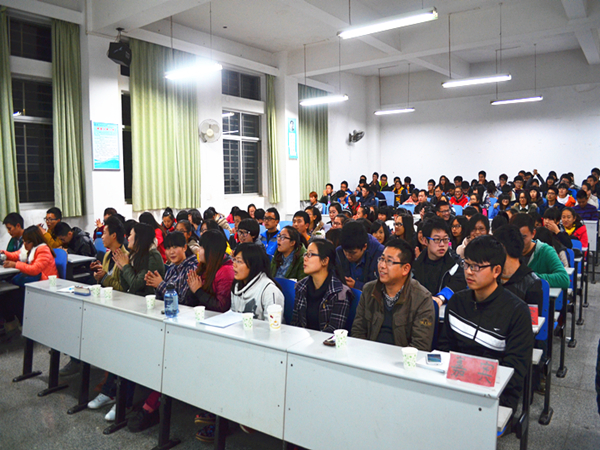 | “ 你是我的眼,带我 领略四季的变化……” 体育部委员蒋平康的一曲《你是我的眼》,营造了活动现场激情欢乐的气氛, 观众们随着歌声,欢乐地打着节拍。 12 月9日晚七点, 为期一个多月的法学院 第十一届团干培训结业典礼暨团学联欢大会在八教 1-4 隆重举行。学工办主任朱荣、辅导员伍安老师应邀出席。 一段动感搞笑的VCR拉开了活动的序幕,带领大家回顾了团干培训一个多月来的点点滴滴,展现了新一届学生干部的成长历程。学员代表陈赟媛发言说:“通过此次培训,我领悟到学生干部的真谛,在以后的工作中,我将以饱满的热情和积极的进取心促进个人的不断发展,与团委学生会携手共进。”紧接着,朱荣和伍安老师为荣获“先进工作个人奖”、“优秀学员将”、“优秀策划奖”的个人进行颁奖,以资鼓励。 在众人的期待中,活动的重头戏——团学联欢“闪亮登场”,各部门大显神通,展示才艺。 治保部以一支舞蹈串烧 high 翻全场。他们 随着音乐地变换,舞姿亦随之改变,时而柔和、时而劲爆,轰动一时的《江南Style》的骑马舞更是被他们表演得淋漓尽致,甩动的手臂、扭动的腰肢极尽夸张。他们用搞笑的动作展现着他们的Style,引得全场欢呼一片,把现场欢乐的氛围推向高潮。 此外,就业服务部、心健部和广告部联合表演的小品《学妹、学姐哪个适合做女朋友》、宿管部的歌曲《第一天》、志愿团的合唱《我和你一样》也是精彩无限,让人回味无穷。最后,在清新风的“吉他小王子”衡特原创的一曲《我的学习部》的吉他弹唱中,此次联欢会画上完美的句号。 “作为一名学生干部,大家要明确自己的目标,寻找最初的梦想,不断地去思考,沉淀自己。成长路途并不会一帆风顺,最重要的是在这过程中大家的收获。希望学生干部们能够珍惜每一个机会,不断塑造自己,增强自身能力。”大会在朱荣老师的总结中圆满落下帷幕。 (责任编辑:admin) |
