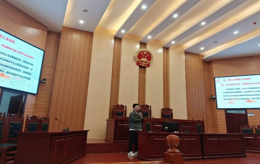 5月13日上午,李斌老师在立言楼模拟法庭进行了第二次主题党课—“党员的基本条件与发展党员的基本要求”。李老师从申请入党应该满足的基本条件、加入党组织的过程以及发展党员应该达到的基本要求这三个方面,系统全面地讲授了关于加入中国共产党的事项。在此次授课过程中,李老师多次强调,申请入党首先要端正入党动机,加入党组织不应该是为了谋取个人利益,而是内心产生的一种强烈的靠近党组织的愿望。同时,他强调入党是一件非常严肃的事情,希望学员们在接下来的培训中能够持之以恒,不断提高自身素质,争取早日加入中国共产党。通过此次授课,学员们更加深入地了解了加入中国共产党的基本条件和要求,同时也明确了入党的严肃性和责任感。