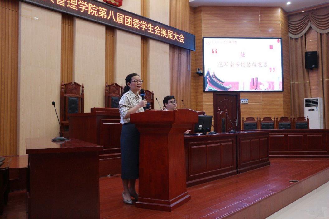 大会第二项,团委学生会主席团和部长的竞选正式开始。各竞选人员分别从个人介绍、岗位认知、竞选优势、工作展望四个方面进行竞选演讲,他们慷慨激昂的陈词和对未来工作的满腔热情赢得了与会人员的多次掌声。演讲完毕后,郭志军老师、范军豪副书记分别进行了大会总结。郭老师主要讲述了执行力和工作态度问题。他指出,学生干部要提前适应未来的工作强度,做好心理准备,同时也要认真对待工作,少些低级错误和照搬照抄的行为。范军豪副书记首先对过去一年的学生会干部表示由衷感谢,并强调学生干部一定要重点提升“两个意识”:大局意识和服务意识,多为大家想,多做好服务;同时也要注重提升“五种能力”:学习能力、组织能力、协调能力、协作能力和执行能力。范书记对第八届学生会干部寄予厚望,希望他们能扎扎实实地开展工作,用行动来证明自己的能力,用行动给色色动漫