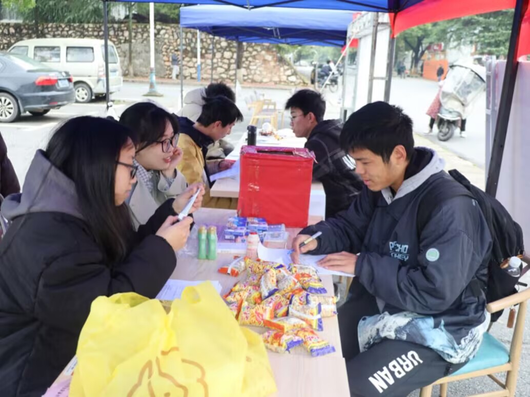 法律协会以“校园食品安全”为主题,于八珍楼和二至坊前设立活动分点,开展消费者权益保护宣传活动。尽管天气寒冷,但党委副书记范军豪等领导亲临现场慰问并送上暖手宝,让现场的热情更加高涨。