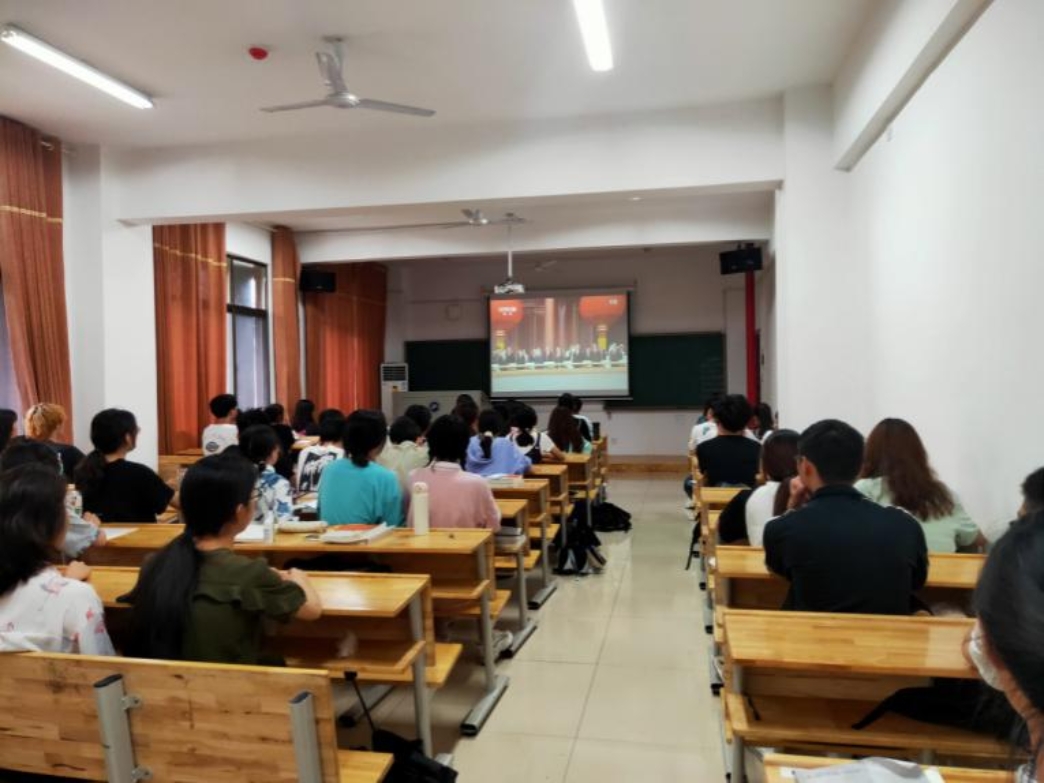 全体党员干部、群众、所有无课老师以及113位学生在会议室观看大会盛况,深刻领会和学习习近平总书记重要讲话精神。