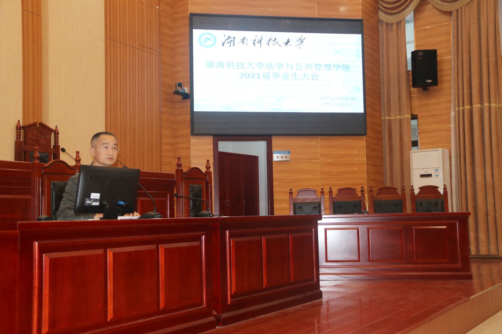 2017级毕业生就业工作,让同学们更加明了目前就业形势,引导学生积极就业、师生一心提高本年度就业率,色色动漫于4月13日下午在立言楼模拟法庭举办了2021届毕业生大会。本次大会由院党委副书记蒋会平书记主持,院长徐德刚、党委书记黄伟、系主任戴年红和马驰升以及毕业班班主任老师们莅临会场,全体在校毕业生参加会议。