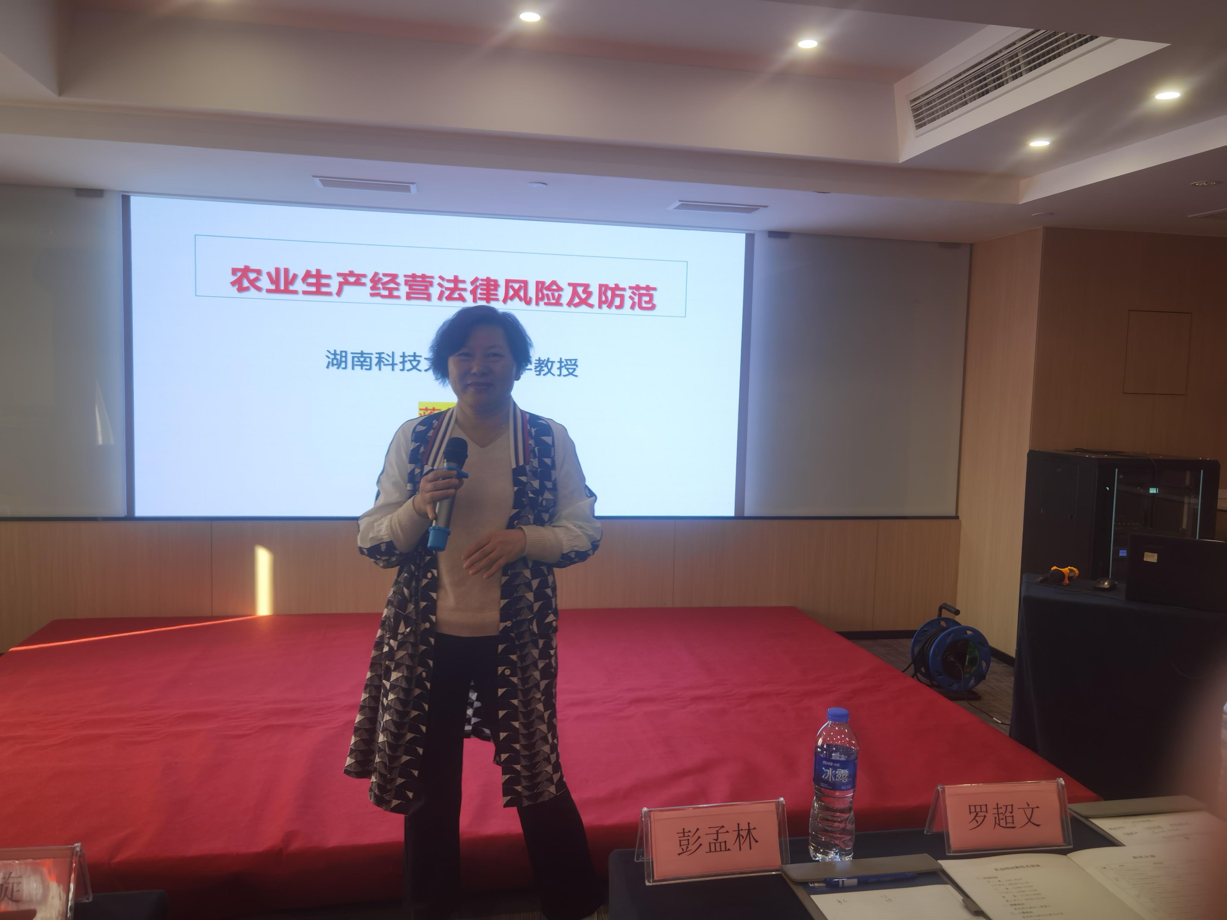 经理人、农业产业带头人专题培训《农业生产经营中的法律风险及防范》课程;11月24日,应长沙市中级人民法院之邀参加“同饮一江水,共护母亲河”湘江流域环境资源审判论坛活动,为我省湘江流域环境资源审判提供专家建言;11月27日,应省委统战部邀请参加2023年度省级同心美丽乡村示范片区评审活动,为建设我省美丽乡村发展提供智力支持。