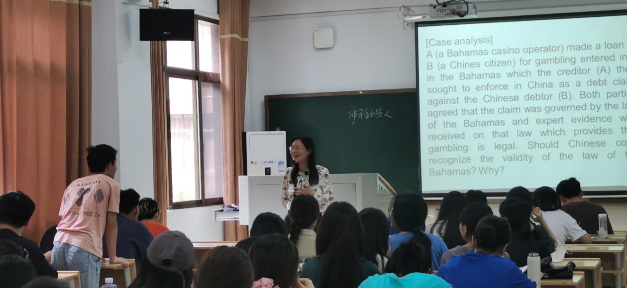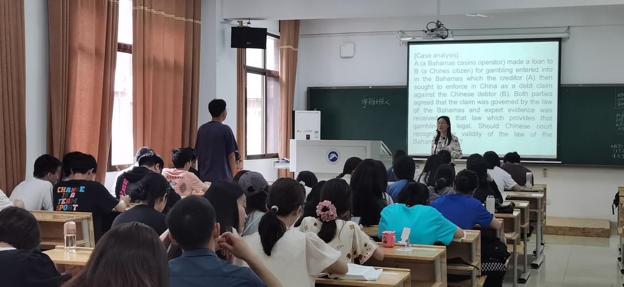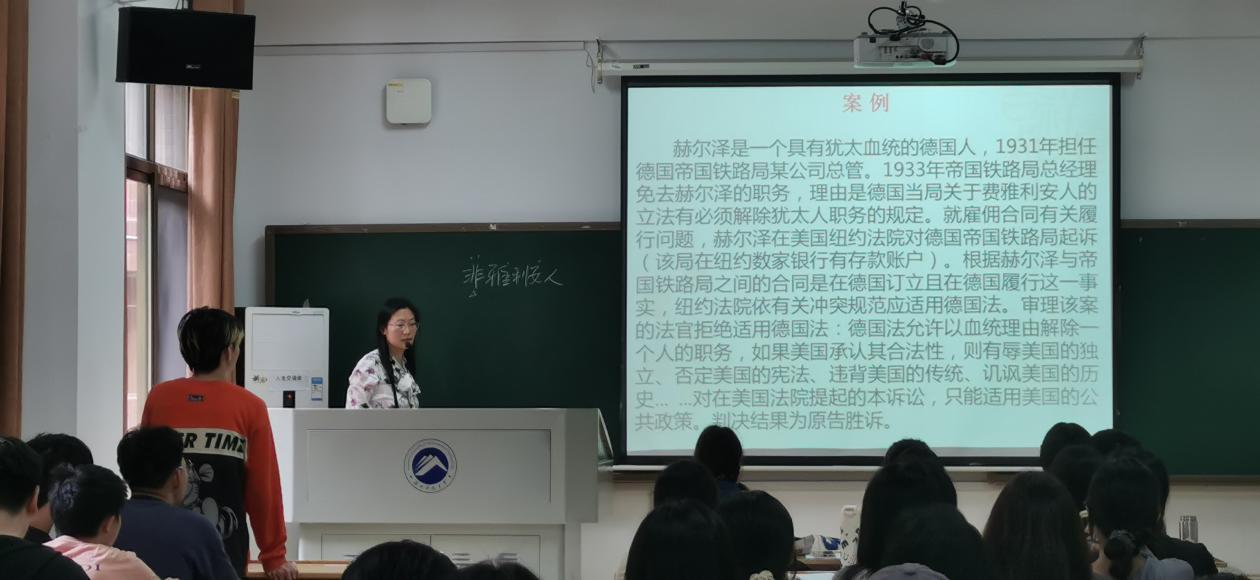 5月8日下午,法管学院在立言楼A211举行2023-2024学年第二学期“教学礼拜”金课观摩活动,由黄素梅教授主讲《国际私法》公开示范课,院领导和没课的教师参加了此次观摩。黄老师在课堂上结合实例旁征博引、娓娓道来,与学生频频互动,展示出金课风采,参与观摩的青年教师表示受益匪浅。