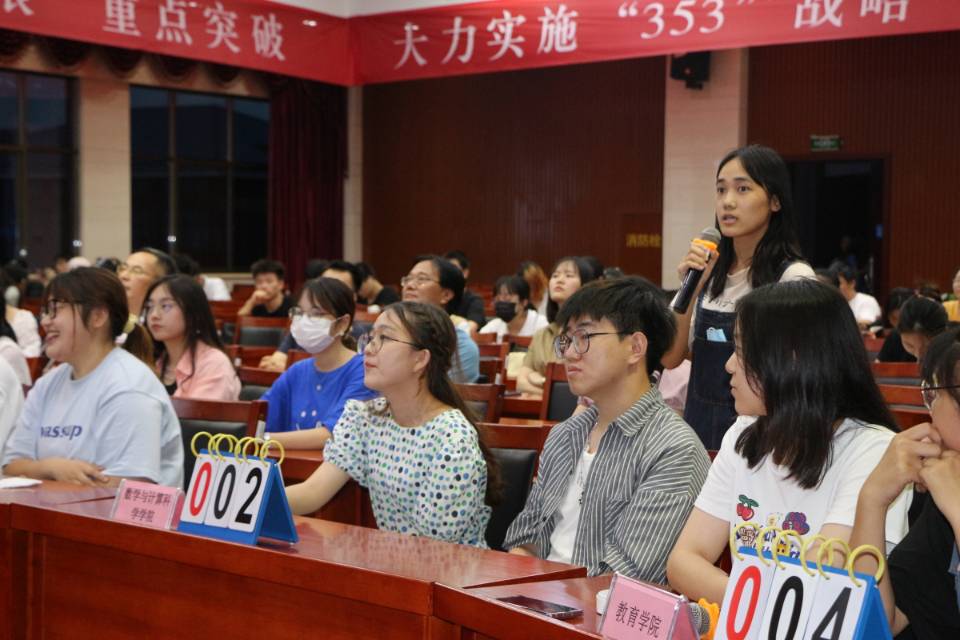 第二轮来到最为激烈的抢答题环节。从主持人宣布开始,同学们便摩拳擦掌、信心满满,想要在这一轮与其它队伍拉开差距,取得优势。伴随着读题人的“抢答开始”,“啪嗒”的抢答声也随之而起,各学院代表都铆足了劲想要拔得头筹。但是抢答总归有个先后。没有抢到的队伍万分失望,抢到的队伍也不能只有迅速的反应能力,还得需要有强大的知识储备作为支撑,否则也只能遗憾放弃来之不易的答题机会。