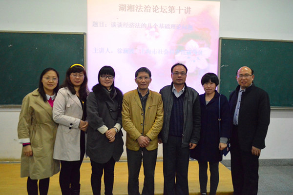 湖湘法制论坛第十讲开讲。此次我们特邀上海社会科学院研究员,上海市法学期团研究会副会长徐澜波先生为主讲人,讲述“经济法的几个基础理论问题”。讲座由喻军副院长主持,胡之芳教授、宋智敏、李云霖以及邱帅萍等老师出席,14、15级法学专业同学到场学习。 徐老师首先就目前学界争论的“经济法究竟是权益本位还是权力本位?”这一问题引导同学们思考经济法的本源。经济法与传统部门法不同,它先有概念、再有实在法。经济法作为独立的部门法,它的本体要素由特定的主体、特有的调整对象、特殊的法律调整手段、实施方式构成。因此,如何正确地运用法律手段调节国家经济也成为学术界重点讨论的问题,同样这也是我们法学专业同学需要思考和解决的问题。在经济法的实施问题方面,徐老师讲道:“经济法一般运用集体诉讼、公益诉讼、个人诉讼等方式混合实施,并且我国在经济法的实施方面,还有许多进步和发展的空间”。 在讲座最后的环节中,徐老师与喻军及李云霖老师探讨了“如何在法律体制下运用经济手段”以及“经济法与政策的联系和差别”等问题。15级法学四班的王静同学在讲座结束后说到,这次讲座提高了她对经济法的理解,为以后学习经济法提前做好了准备。 (责任编辑:admin) |