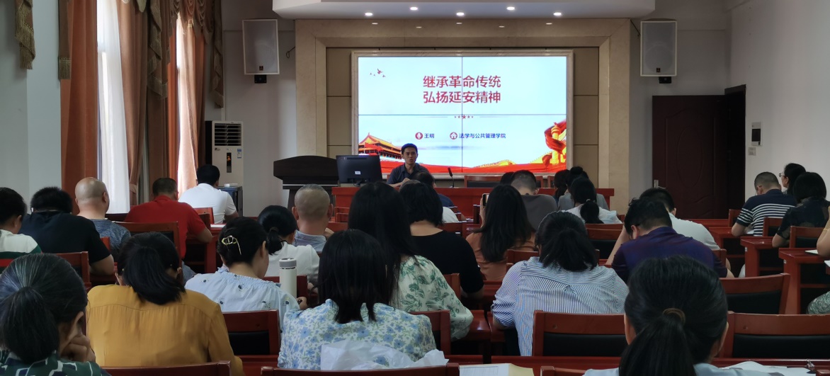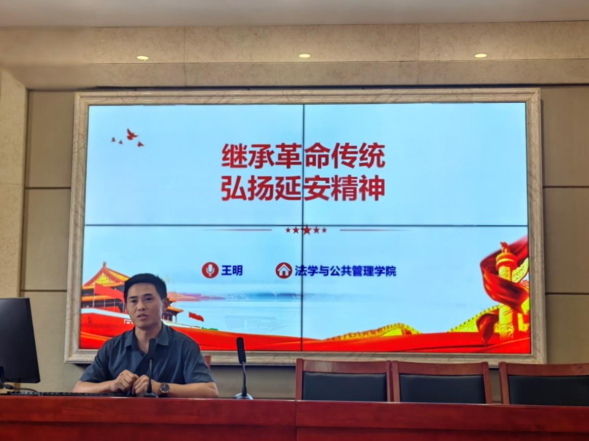 在立言楼A425开展了以“继承革命传统 弘扬延安精神”为主题的“微党课”第七讲活动,本次党课由学院教学副院长王明主讲,全体教职工党员参加。