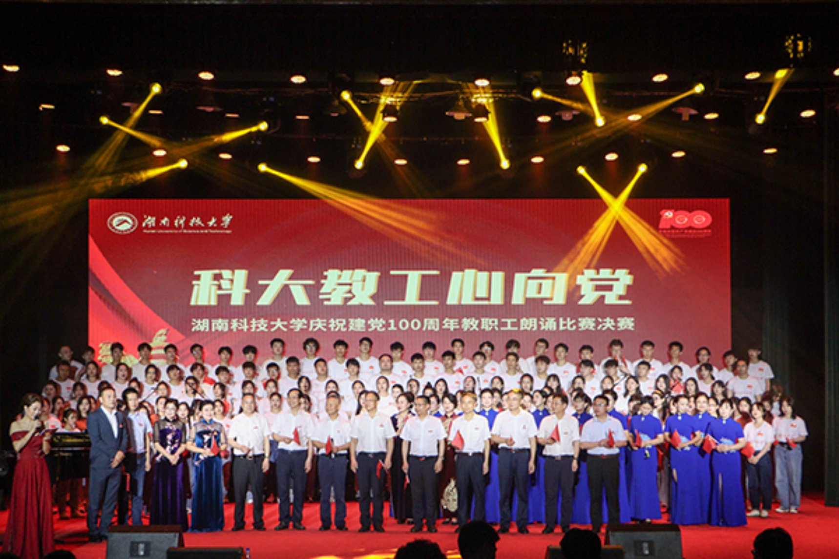 为喜迎建党百年,6月29日晚,我校“科大教工心向党”朗诵比赛决赛在俱乐部顺利举行。校党委书记唐亚阳、校长朱川曲及其他在校校领导班子成员出席,各二级单位党政主要负责人、各分工会主席、教职工代表、学生党员代表共同欣赏了这场视听盛会。来自各分工会的十二支队伍参加了本次比赛。