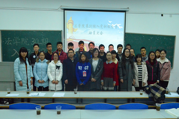 第一党支部书记卓闻君、思想政治教育党支部书记孟遥以及各位监督党员们。第30期全体入党积极分子参加大会。 大会伊始,现场播放的一段视频让在场同学看到了历届法学院学子的优秀表现:有热烈的讨论会,也有精彩的社会实践活动。这激发学员们对入党培训的期待与憧憬。紧接着,党建办常务副主任林豪庭、副主任张利远先后发言,他们鼓励学员们坚持马克思主义信仰,立志投身于社会主义价值观建设,在入积培训中不断提高思想觉悟,提升综合能力。而后,任命了本期培训班的班长、组长,并对他们的职责和培训班纪律做了详细说明。上一期的校级优秀学员代表、党建办主任符一叶就入积学习中可能会出现的问题与学员们进行了交流,她们鼓励学员以轻松的心态、端正的态度、积极的努力投入学习,为学院争光。大会最后,伍安老师做总结性发言,他肯定了党建办的出色组织能力和本届入党积极分子的优秀表现。他认为,在当代中国,加入中国共产党有了更重要的意义,但也提出了更高的要求,他肯定每个想要向党组织靠拢的心,勉励他们认真在生活中践行社会主义核心价值观。 在大家热烈的掌声中,本次大会结束。第30期入党积极分子培训即将展开,让我们期待色色动漫
