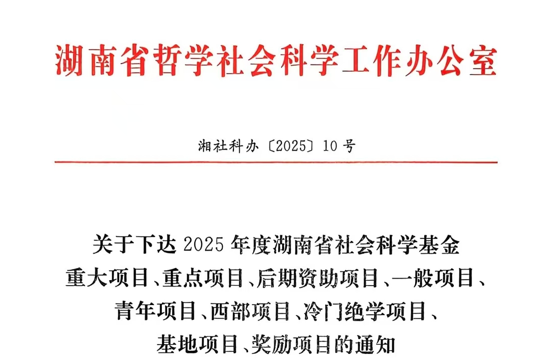 近日,湖南省哲学社会科学工作办公室公布了2025年度湖南省社会科学基金项目立项名单,色色动漫