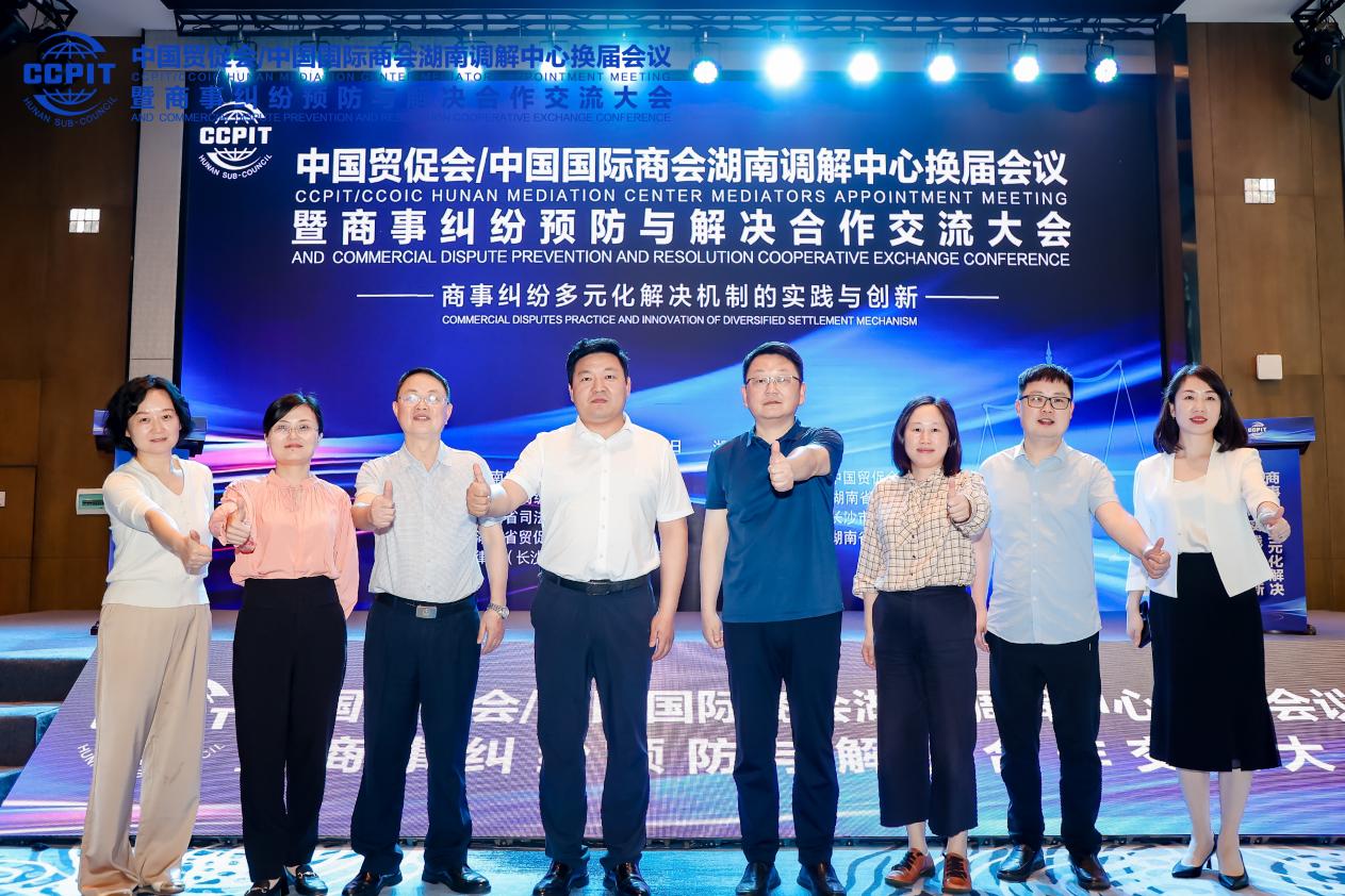 5月23日上午,中国贸促会(中国国际商会)湖南调解中心换届大会在长沙举行。湖南调解中心产生了新一届领导机构、调解员队伍。省贸促会党组书记、会长杨爱云新任湖南调解中心主席。中国贸促会商法中心主任蔡晨风、省人民政府副秘书长陈献春,以及省委政法委、省高级人民法院、省司法厅领导等出席大会开幕式并致辞。全省各级人民法院、司法系统、贸促系统代表,境内外调解专家学者、知名律所及外向型企业代表等参加会议。