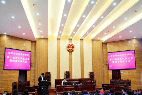 第二届学生代表大会暨学生会换届大会在我校立言楼模拟法庭召开。本次会议由院团委学生会第一副书记杜婧主持,院党委副书记蒋会平、学工办主任朱荣老师、辅导员王球云、沈琪老师应邀出席,全体学生代表共同参与。 会议伊始,蒋会平书记作了开场发言。他对上一届学生会全体干部的辛勤付出表示由衷感谢,并预祝即将竞选的同学能取得好结果。他建议竞选的同学们要“一颗红心,两手准备”以积极乐观的心态面对学院和学生代表的选择。随后现任团委学生会主席李禹宏作了2017-2018年学年学生会工作报告。他向同学们回顾了学院去年一年所举办的大型活动以及所取得的优异成绩,向支持学生会工作的同学们表示感谢。他还指出了当前学生会工作所存在的不足,并希望这些问题在接下来的一年中能得到改善。最后,他期望下一届学生干部能继承学生会严谨踏实的工作作风,发挥服务精神,继续为学院发展贡献力量。 大会第二部分,学生代表们听取《色色动漫