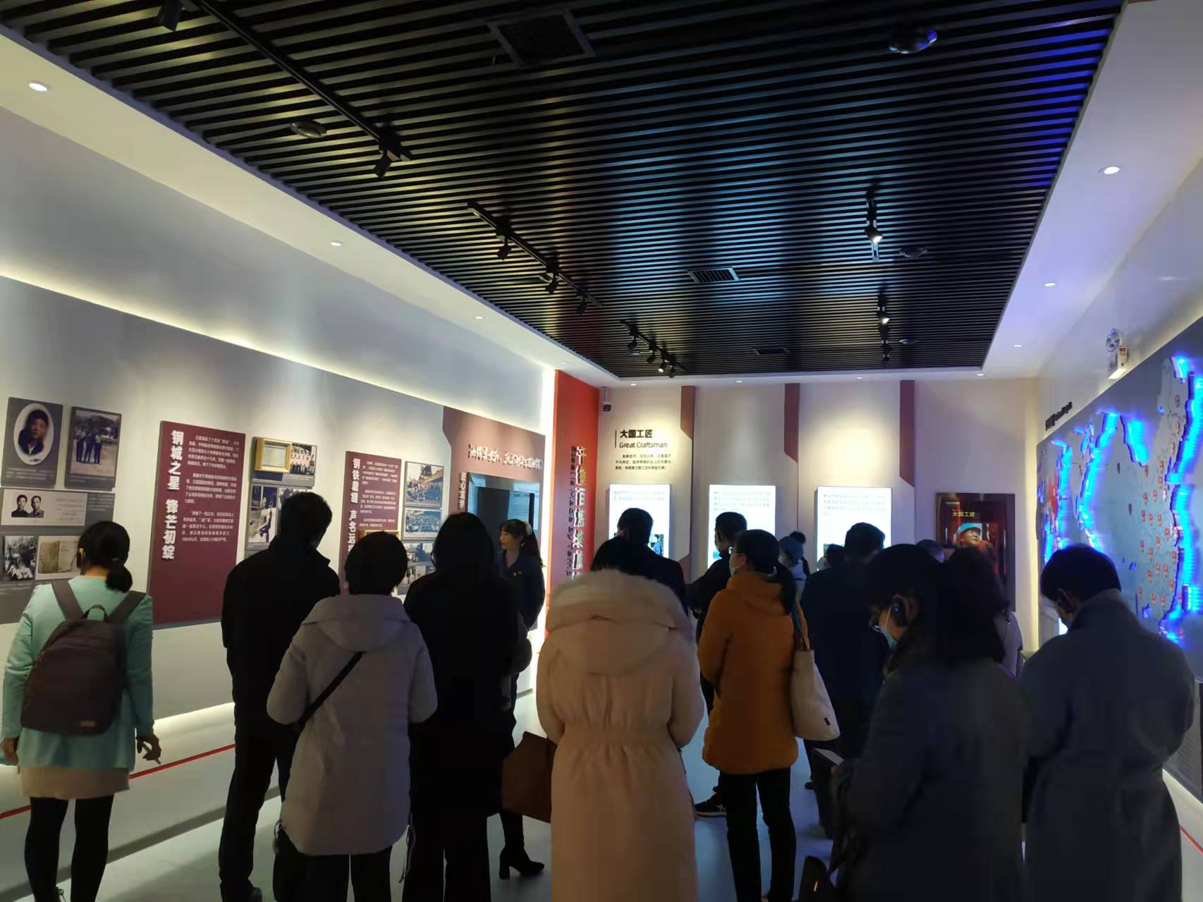 参观学习的第一站是艾爱国焊接实验室。支部成员们通过讲解员介绍,以及观看实验室中的图片、文字、实物、视频等,感受到了艾爱国同志从一名普通工人成长为焊接行业“领军人”的艰辛历程,学习了执着专注、精益求精、敬业守信的大国工匠精神。