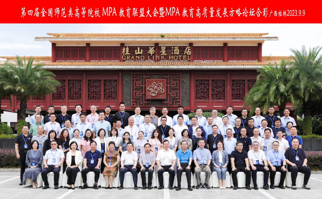 2023年9月9日,由全国师范类高等院校MPA教育联盟主办,广西师范大学承办的“第四届全国师范类高等院校MPA教育联盟大会暨MPA教育高质量发展方略论坛”在桂林举行。全国公共管理专业学位研究生(MPA)教育指导委员会委员、全国二十余所师范类高等院校MPA培养单位共80余人参加会议。与会人员围绕公共管理学科新版目录做了重大调整的情况下对MPA教育的培养模式、目标导向、管理体系、师资建设等方面问题进行深入探讨。