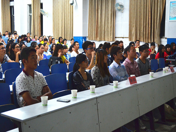 | 10 月10日 晚7点,法律协会、毛研会、隐山哲学社三大社团推介会在八教1-3隆重举行。法学院辅导员赵晗冰老师、主席团所有成员、三大社团社长出席,14级全体新生参加活动。 大会在热烈的掌声中开始,各社团介绍人登台推介。“我相信我就是我,我相信明天……”在毛研会会员们的歌声中,副理事孟遥抓住社团“新、精、稳”的理念向新生们介绍毛研会的日常工作,并诚挚地邀请新生加入;法律协会着重介绍了一些社会实践活动,3·15、12·4等法制宣传活动激起了同学们参加法律协会的兴趣;隐山哲学社社长王琪琰别出心裁,一身中山装上台,展示出了国学的魅力,一语“福来”即湖南,让现场气氛更为活跃,祭孔、茶话会、罗马议院等一系列活动,更让大家有些许好奇。此外,潇湘学院社区法治服务协会彭月丹同学前来推介会,进行了交流。 最后,由 赵晗冰 老师作了活动总结, 赵 老师对新生鼓励道“社团很自由,喜欢创新独立的同学可以积极参加。加入社团,能够让大家在课余时间认识更多的朋友,增长见识。社团这个平台是大家真正步入多彩的大学生活一部分。”活动在新生的掌声中圆满结束。 会后,14哲学班薛童予说道:“以前一直好奇大学生社团活动,今天看到色色动漫