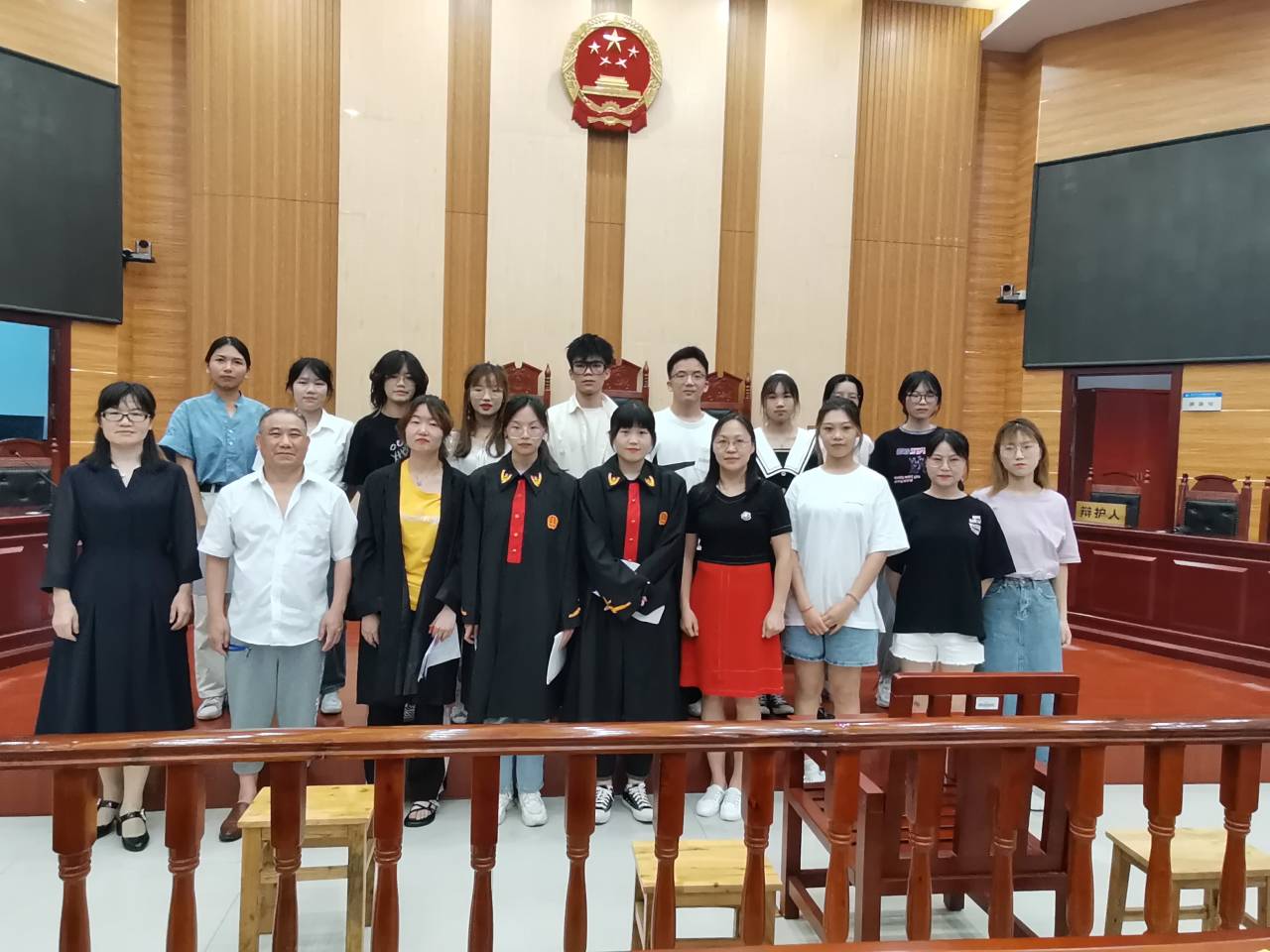 胡之芳老师、吴四江老师和雷连莉老师莅临现场观摩指导,20级全体法学生参与活动。