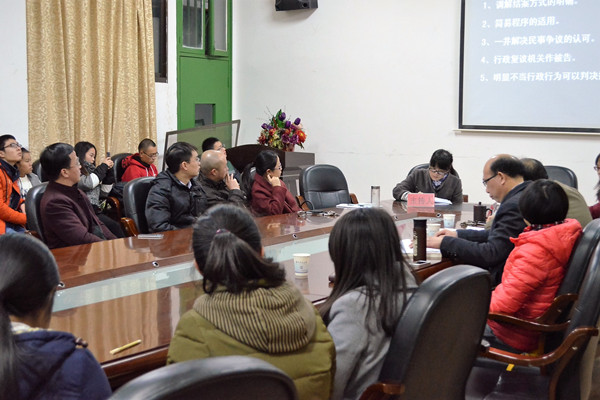 副院长喻军、哲学系罗建文教授、思政系主任毛小平、法律系两位副主任刘鄂、邱帅萍以及朱宇等出席此次讲座,部分法学专业生到场聆听。 “行政诉讼法的修改是摆脱行政诉讼法实施困难的需要,顺应了法治国家建设的趋势,符合十八届全国人民代表大会法治国家建设战略。”宋智敏老师说。她同时指出,修正后的行政诉讼法与旧法相比,突出解决行政争议,强调对行政权力的监督,并且扩大了司法审查的范围。随后的讲述中,她通过援引经典案例,对修改的关键点做出分析评价。新行政诉讼法通过规范“红头文件”、严格执法程序、增强司法技能等具体措施发挥行政诉讼对国家改革和社会稳定发展的推动作用,从而有利于推进国家治理体系的现代化。 评议环节中,胡正昌教授对该次讲座予以肯定,他认为宋老师对新行政诉讼法的分析到位,讲述严谨。李云霖老师以案说法,列举了乡镇府对于危房改造等民生项目不作为的问题,对行政诉讼法进行了更深层次的思考,雷连莉则从程序正义的角度谈了她对新行政诉讼法价值理念的理解。 在场师生围绕论坛主题进行了热烈的讨论。讲座最后,罗建文教授作总结性发言,对湖湘法治论坛给与了高度评价并祝愿湖湘法治论坛越办越好,能够走出校园,进一步扩大学术影响和社会影响。至此,讲座圆满结束。 (责任编辑:admin) |