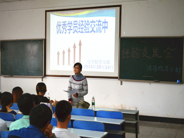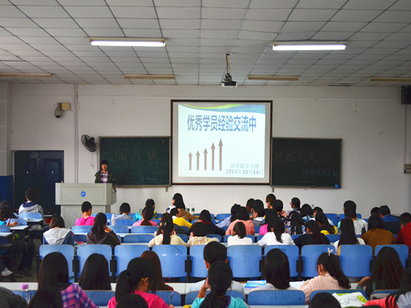 | 10月14日下午,在英语四六级考试到来前两个月,法学院英语四六级学习经验交流会于八教2-3 教室成功举行。辅导员赵晗冰出席此次活动, 12 级胡慧、孙汝佳、王欢、郑瑞珍、刘嘉雯五位优秀学员以及即将面临四级考试的 13 级同学全体到场。 在交流会中,五位优秀学员依次上台发言,分享其学习备考经验。“宝剑锋从磨砺出,梅花香自苦寒来”, 12 级学生孙汝佳上台交流经验。她说到“勤背、勤练、勤听、勤用”,只有通过反复的学习和巩固才能够对四级考试满怀信心。接着,优秀学员郑瑞珍提出,“英语是用的,不是考的”一门语言的学习要通过不断地练习和灵活地应用,语法的关键性决定考生必须熟练掌握语法规则,备考过程中这点不可小觑。随后, 12 级刘嘉雯、胡慧也分别就四级备考给学弟学妹们提出了宝贵意见。 13 级章豪表示自己在做听力时很难克服焦虑情绪,希望知道如何提高听力水平。 12 级王欢强调秘诀只有两个字“坚持”。通过不断地练习,磨练自己的耐心,坚持心中的信念。 最后,赵晗冰老师发表会议总结,她对比了 2010 至 2013 年四六级英语考试通过率,指出:色色动漫