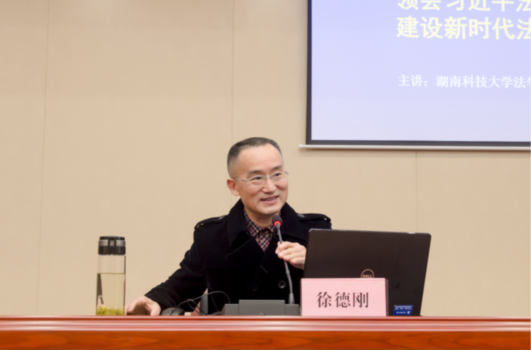 在学校外,首先是为相关决策部门提供法律意见,服务于政府的行政决策,徐老师担任株洲市湘潭市政府行政决策法律咨询专家,参与过其重大事件、案例以及相关规则制定的讨论,其次是进行法律宣讲,上至市委中心组、省各层级干部,下至村镇、学校、工厂,从全国农村治理先进村新化县油溪桥村到湘西扶贫点再到乡村振兴示范村洞口县,处处都留下了徐老师讲课的身影。在这个法治的社会中,依旧存在很多落后的地方,人民的法律意识淡薄,所以法律的宣传至关重要,而徐老师恰恰担任了人民与法律的连接者这个角色,他身为一名法律工作者,积极进行普法宣传,服务人民与社会。