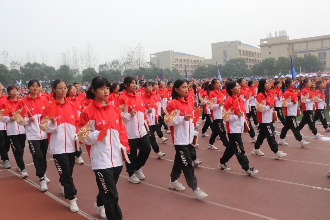 的方阵统一身穿红白上衣,灿烂的笑容抒写着他们内心的热情,激昂的口号声透露着他们意志的坚定。庄严的国歌声奏响,全体师生起立,所有人的目光都聚焦在鲜艳的五星红旗上。在庄严的升国旗仪式之后,朱校长为此次开幕式致开幕词。他指出体育运动和体育精神在当今时代具有重大意义,希望同学们借此机会强健体魄,挑战自我。