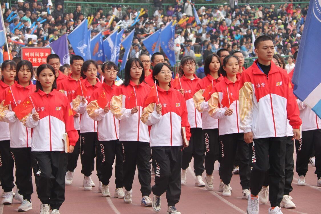 2020年秋季运动会在第一田径场顺利举行。校党委书记刘德顺、校长朱川曲、副校长胡石其、各学院领导、全体参赛教职工、学生及相关工作人员参加了此次开幕式。
