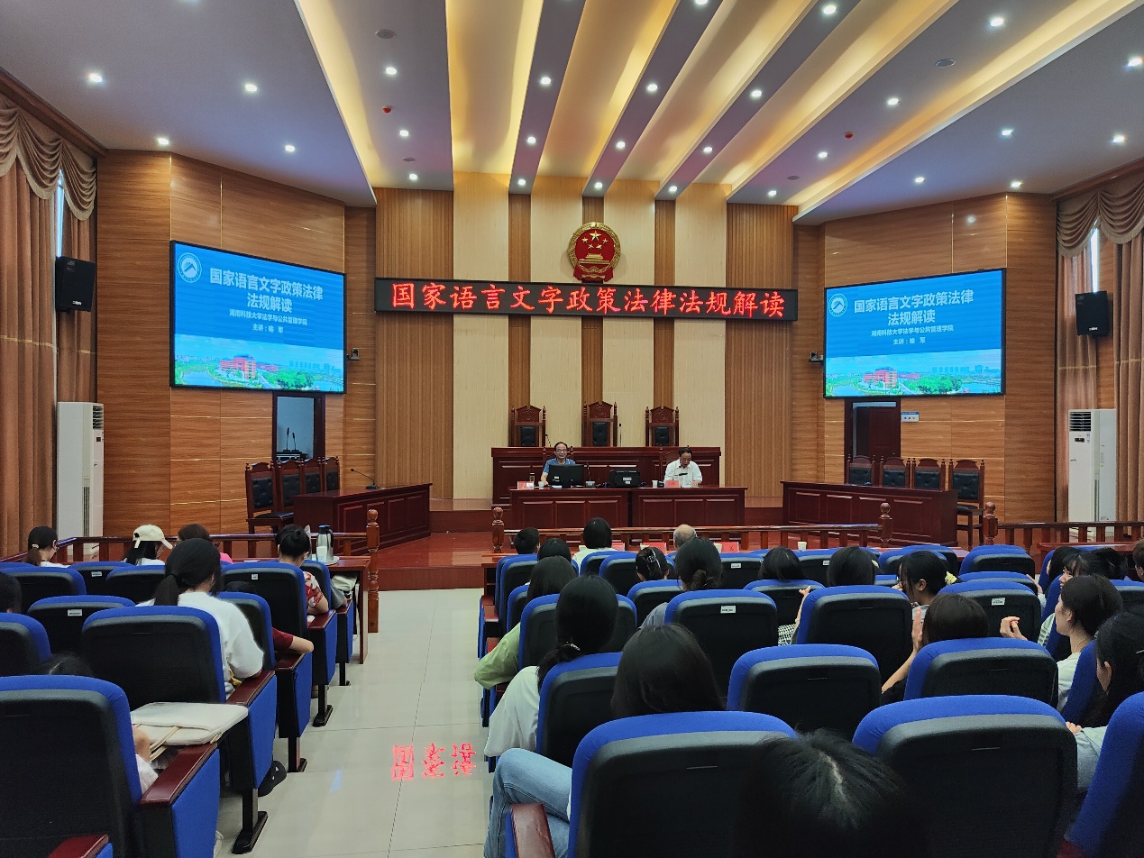 ▲法管学院举办科技与人文大讲堂第二十六讲“国家语言文字政策法律法规解读”