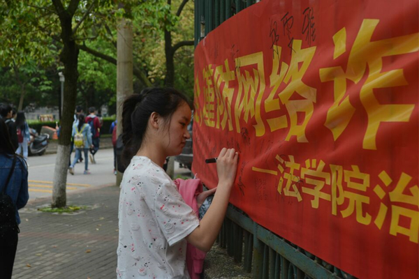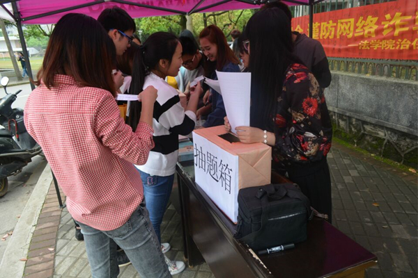 团委学生会治保部在学校北校区电信路口举行了“安全宣传月系列活动之横幅签名有奖竞答”活动。 治保部成员们早早地在活动地点放置了安全宣传海报,吸引过路的同学,一旁的横幅上则印有醒目的安全标语。通过引导同学们阅读安全宣传标语、在横幅标语上签名并请过路同学抽取放在提前准备好的纸箱里的各种有关安全知识的题目并进行解答,以此提高同学们的网络安全防范意识。 来往的同学们热情很高、积极参与。人文学院的刘玲同学表示,这种活动能有效提升自己的网络安全防范意识。 (责任编辑:admin) |