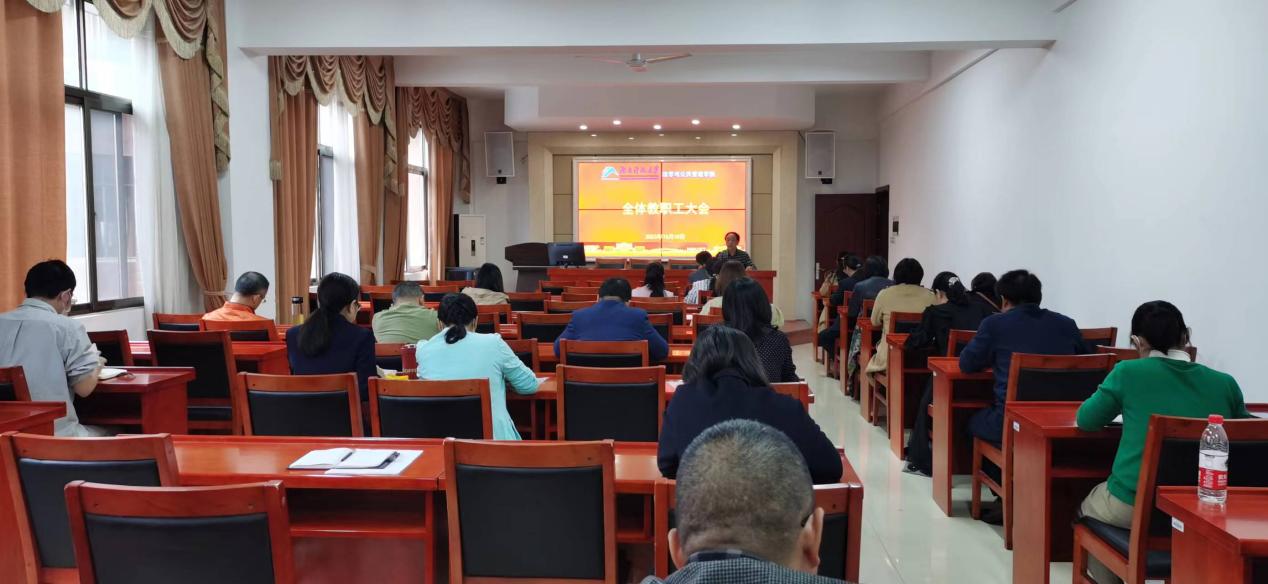 于10月10日下午在立言楼A425召开全院教职工大会,进行迎接本科教育教学审核评估再动员。会议由院党委书记郑海祥主持,全体教职工参会。