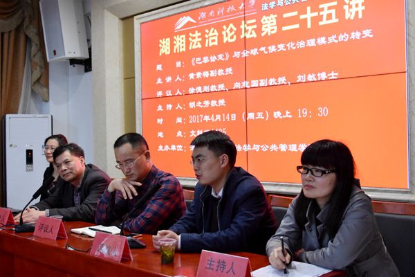 于2017年4月14日于文科楼A425开展以“《巴黎协定》与全球气候变化治理模式的转变”为题的讲座。该讲座由黄素梅副教授主讲,徐德纲院长、向志国副教授、刘敏博士参与评议,喻军副院长、易卫中博士、朱宇老师出席,胡之芳教授主持,部分15级法学学生参与。 讲座伊始,胡之芳教授首先指出气候变化的重要性,并提出全球治理是一个重要的国际政治理论问题,同时法治化的治理模式也是气候变化的重要影响因素,对国际社会产生着深刻的影响。 黄素梅教授从全球气候变化治理历程、协定及其转变对气候变化治理模式的影响等方面,多角度、多层次深入阐述自己的见解。其中在治理模式的价值方面,黄教授认为,协定中所体现的惩罚性和强制性,更能显示减排合作行动的公平和正义;在共同发展方面,加强全球主体的广泛参与、全球盘点机制和弱共区原则,有利于可持续发展。 在评议阶段,向教授将问题拓展到国际经济法领域,从理论价值和实践价值进行讲述;刘敏博士则阐述了该讲座对国际法和国际治理格局的启发;最后徐院长提出了遵约机制的建立,是否能够借鉴从而转变中国的环境治理方式的问题,以及环境权的实现,气候治理和经济发展之间的矛盾。 此次讲座有利于提高色色动漫