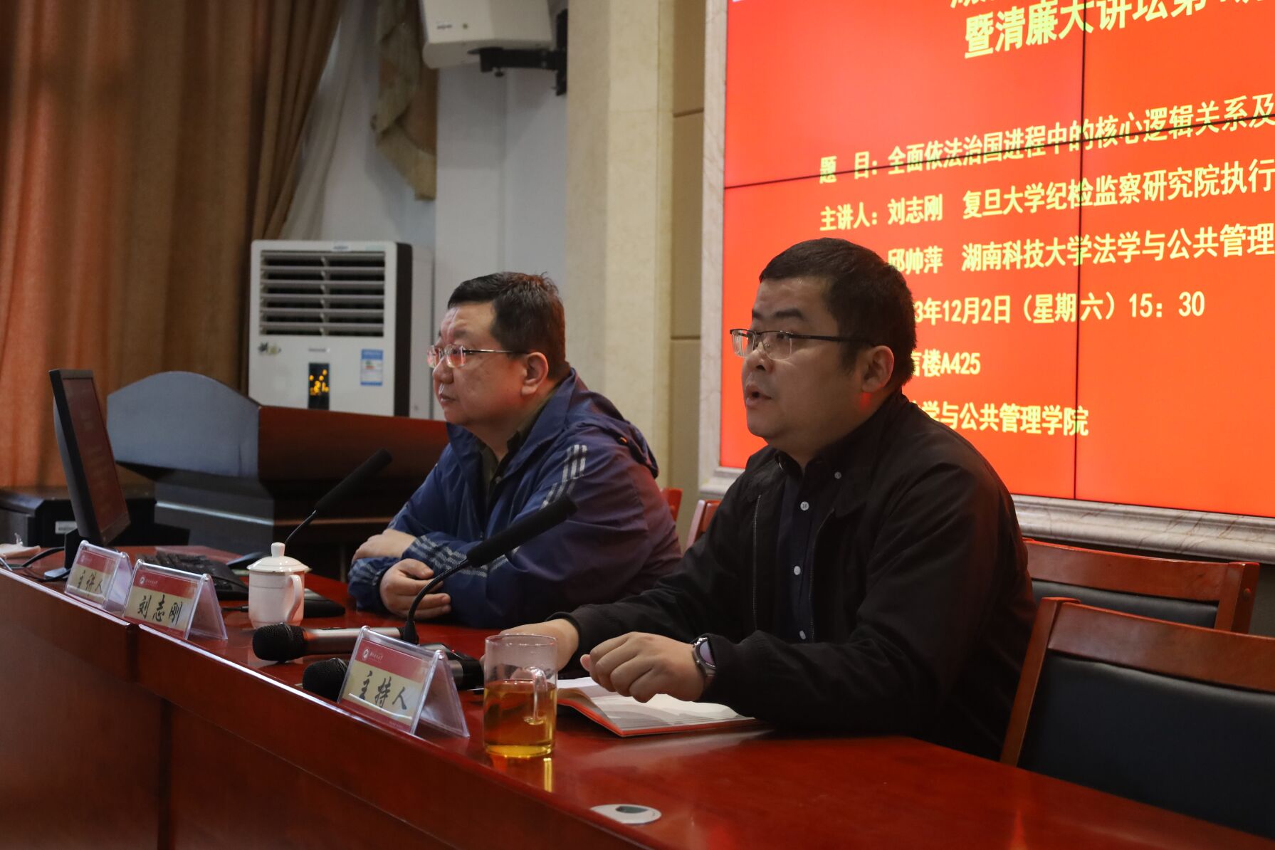 2023年12月2日下午,复旦大学纪检监察研究院执行院长、教授,博士生导师刘志刚教授应邀在立言楼 A425举行湖湘法治论坛第113讲暨清廉大讲坛(原湖湘纪检监察论坛)第4讲,讲座题目为全面依法治国进程中的核心逻辑关系及其展开。出席本次的讲座有色色动漫