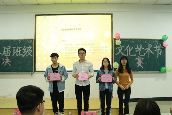 第二届班级文化艺术节决赛于4月23日19:00在第八教学楼2-3教室成功举办。法管学院党委副书记蒋会平、法学教授喻军老师、辅导员王球云老师、沈琪老师、团委学生会主席团成员、宣传部前任部长、副部长及17级助班出席此次比赛。 大赛伊始,蒋会平书记为全体参赛选手致开幕词。他表示本次班级文化艺术节是一个良好的平台,能够使同学们参与到班级建设中,为班级的学风建设打下基础。最后,他预祝大家在本次比赛中取得好成绩。 本次比赛分为PPT解说环节和拉票表演环节。六个班的代表们分别按抽签后决定的顺序向大家展示并讲解本班的参赛作品。法学一班的圣旨和法学三班的台历造型奇特、编辑精心,从众多作品中脱颖而出。法学三班和公管一班的集体照利用电脑特效呈现出了不一样的效果,让评委和观众们眼前一亮。拉票环节时,公管二班用欢快的《海草舞》展示着自己班级充满活力的特色,赢得了在场观众的阵阵掌声。法学一班则用自己改编的抒情班歌合唱展示班级的凝聚力。法学四班的同学们则根据生活灵感编排了一场独特的相声表演也博得满堂欢笑,打动了在场观众,得到了同学们的一致好评。 经过激烈的角逐,本次大赛在颁奖乐的伴奏下完美落幕。法学一班、公管一班、公管二班荣获班刊制作奖;法学四班、法学一班、公管一班荣获班徽设计奖;公管一班、公管二班、法学三班荣获集体照设计奖。 正如公管一班的班刊中写到:青春是一本翻开了就再也合不上的书。班级文化艺术节虽然暂时告一段落,但我们的青春还在路上。未来的学习生活中,我们还要将今天的这份热情保持下去,迎接更加美好的明天! (责任编辑:admin) |