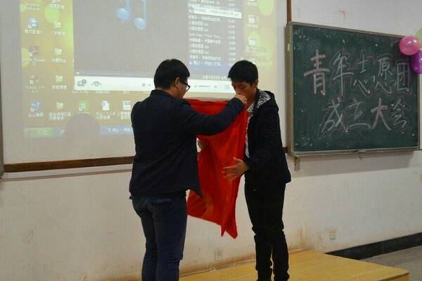 党委副书记叶军、辅导员赵晗冰老师,团委学生会第一副书记张航侨、学生会主席姚牧雨以及各部门部长。本届志愿团全体团员也参加会议。 会议伊始,上任志愿团团长姚逸飞首先上台发表讲话:“选择了志愿团,就意味着你要开始走一条辛苦而又光荣的志愿之路,在此过程中,你们要始终保持着‘志者无怨,愿者无悔’的心态,不怕苦、不怕累、不怕脏,继续做好窑湾助老、义务支教等工作,将色色动漫