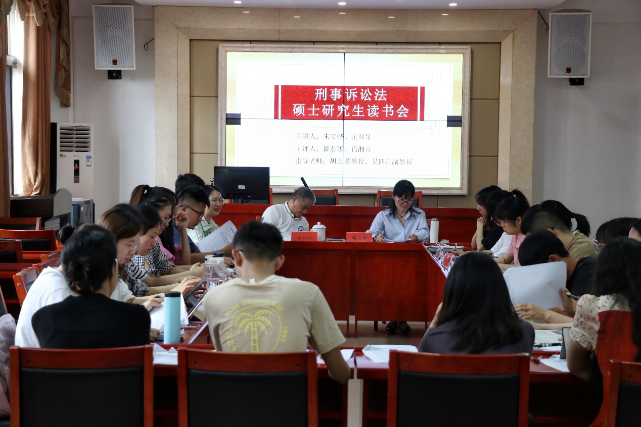 刑事诉讼法研究生读书小组第一次读书会在立言楼A425召开。本次读书会所研讨的书目是美国达马斯卡教授所著《漂移的证据法》。本次会议由20级朱宝桦和21级余双琴作为主讲人,21级盛泰寒和肖湘育为主评人,指导老师胡之芳教授和吴四江副教授出席,研究生刑诉小组的全体成员以及19、20、21级的部分研究生到场参加。
