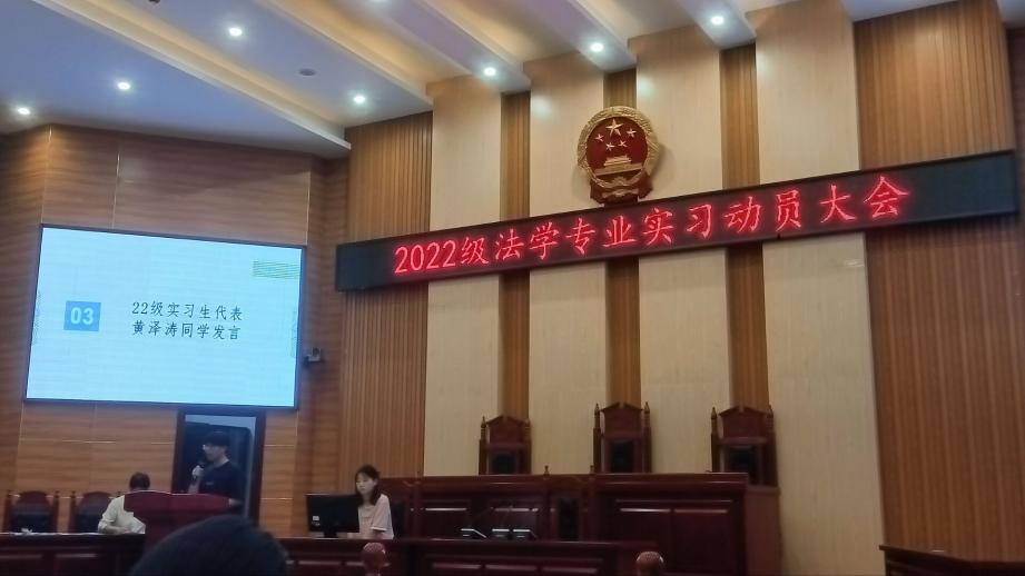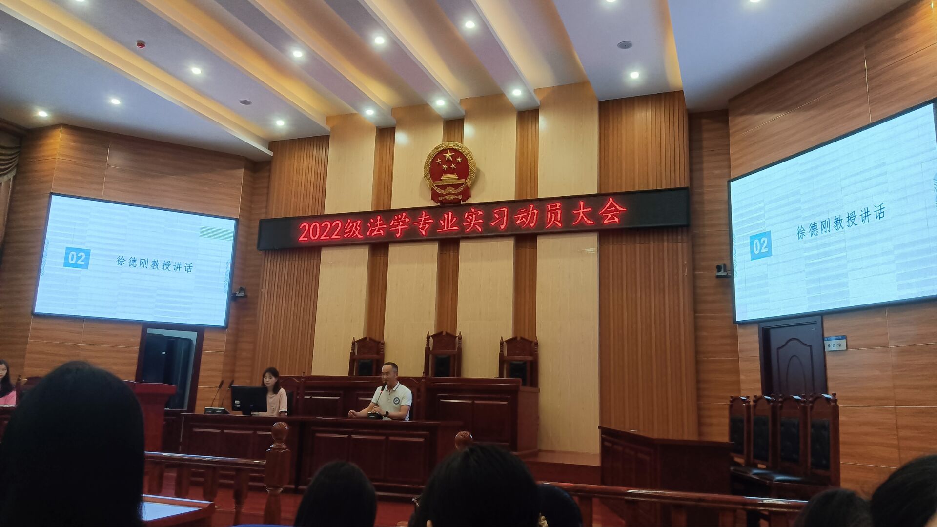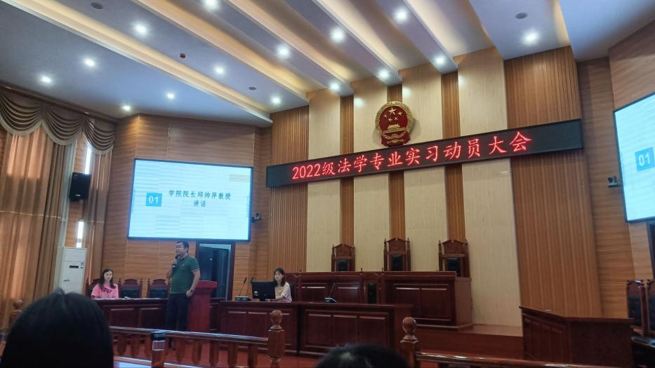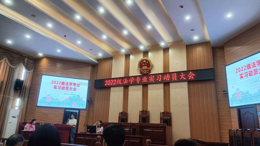 在立言楼模拟法庭召开了2022级法学专业实习动员大会。法管学院法学系全体老师以及2022级法学专业全体学生到会。
