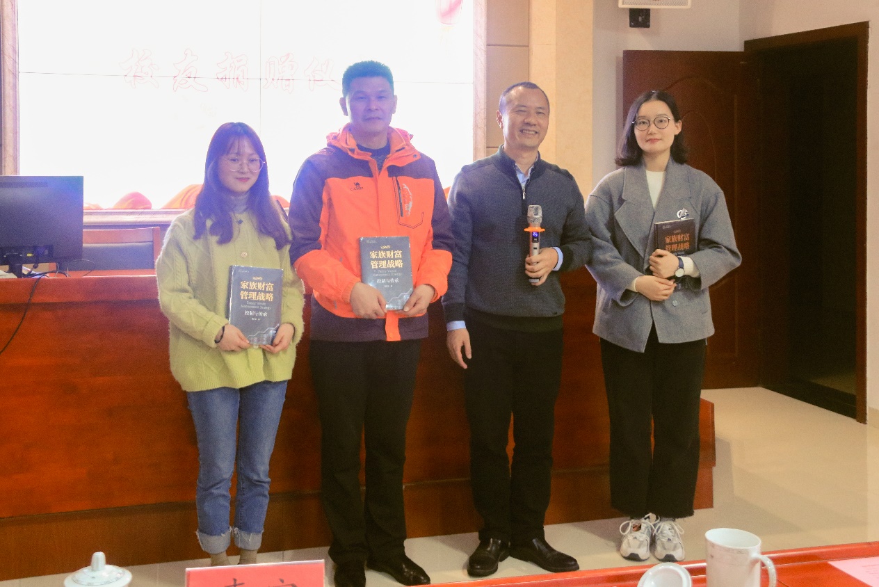 仪式开始,院党委书记黄伟致辞。他代表院党委行政、全院师生对校友表示最诚挚的欢迎,并回顾学院近年的成果,感谢校友一直以来的关注、关心、鼓励。其次校友代表朱小波发言,他感恩母校,感谢恩师同时希望师兄师妹们常怀感恩之心,他将“优秀,自信,感恩,团结,荣誉”寄语学院师兄师妹,鼓励同学们寻找属于自己的优秀。随后校友代表徐伏良宣读本年度获得校友奖助学学金的学生名单,获奖助学生在欢快的音乐声中接过沉甸甸的奖助学金,本次奖助学金发放金额两万多元,30名学生、8个集体获得奖助。校友不仅发放奖助学金,也来传递专业知识。陈科军律师带来他的最新著作《家族财富管理战略》并捐赠500本给学院师生,仪式上教师代表及学生代表作为代表接受捐赠。陈科军表示自己的每一步成长都离不开老师的教育,学院的培养。希望和大家一起在专业领域有交流讨论和思想碰撞。面对校友的深情厚谊学生代表刘芷若表示深深感动于“落其实者思其树,饮其流者怀其源”的情怀,同时也代表广大在校同学们许诺定不负期望,向上向善,成为社会栋梁。最后,此次仪式在学院副院长胡正昌的讲话中落下帷幕,胡院长再次感谢校友们为学院发展、学生成长所做的一切,也代表学院表示后期会致力于校友会工作,也尽学院力量为校友联系、合作提供更好的平台。