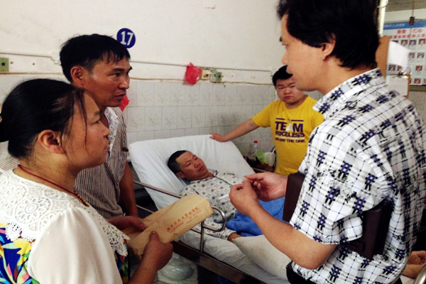 党委副书记叶军和辅导员伍安老师赶到双峰县人民医院,代表学院师生带着满满的祝福看望和慰问了黄波涛同学的父亲,并把善款交到了他们手中。黄波涛代表家人对所有关心和捐助的师生表示衷心的感谢,并表示一定会坚强、感恩,当个真正的男子汉。 虽然捐款有限,但爱心无价。希望爱能让学生安心求学,能让家庭渡过难关。 (责任编辑:admin) |