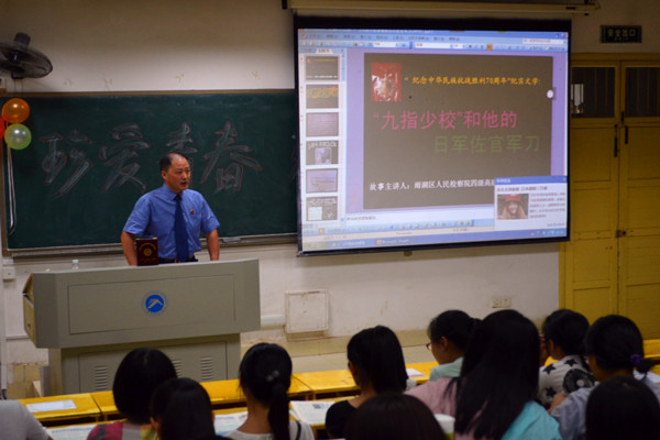 党委副书记叶军出席本次讲座,2014级、2015级法学专业学生参加此次讲座。 “同学们应掌握充足的法律知识,树立法律观念和意识,能在当下或将来的婚恋关系上妥善处理好各种冲突和矛盾,学会保护自己。”姚检察官就“从身边的婚恋案警示身边人,树立正确的婚恋观和女性自我保护意识”这一主题开讲道。他以近年来发生在雨湖区的5宗婚恋血案说法,深入浅出地为同学们讲述懂得相关法律知识与掌握理性处理感情问题的方法的重要性。“白领男失恋动杀机,小护士拒爱酿血案”是其中一个关于恋爱经济纠纷的案件,他生动跌宕地描叙案发过程,客观之中不失对当事人行为独具慧眼的分析,提醒同学们不要轻易确定恋爱关系,学会理性判断对方诚意。 此外,他还就日本安倍政府通过安保法案这一严峻的政治形式,结合父辈抗战艰苦卓绝的事迹,启示同学们传承舍身卫国、不屈不饶的抗战精神,并希望大家成长为心系国运、胸怀正义的优秀法律工作者,为国家繁荣昌盛而贡献自己。 (责任编辑:admin) |