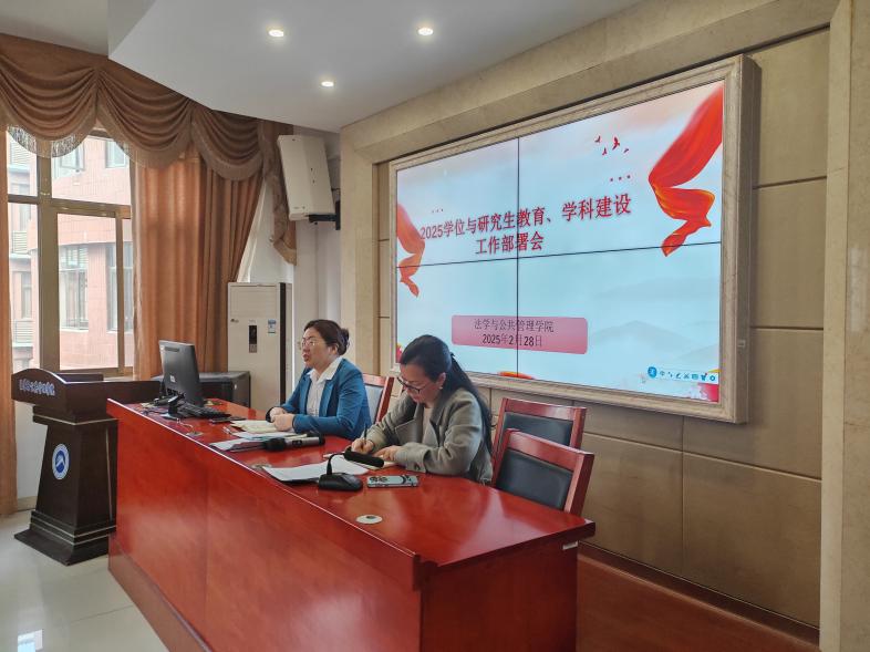 于2025年2月28日下午在立言楼A425召开2025学位与研究生教育、学科建设工作部署会。本次会议由副院长宋智敏教授主持,党委副书记范军豪、副院长王明教授及学院全体研究生导师参加了本次会议。