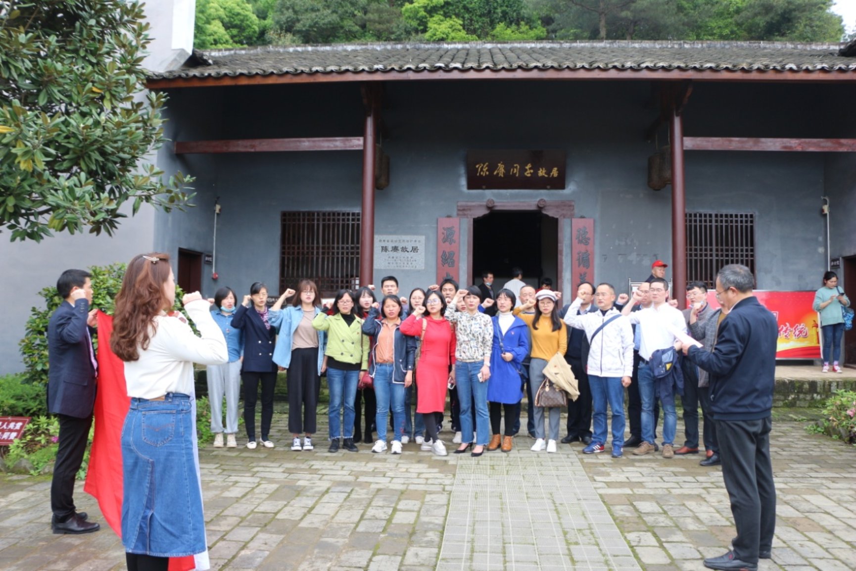 行程的第二站是来到湘乡市龙洞乡泉湖村杨吉湾陈赓大将军故居。到达陈赓同志故居后,学院党委书记黄伟同志带领全体党员,在鲜红的党旗前,重温了入党誓词。老师们举起右手庄严宣誓,铿锵有力,掷地有声。