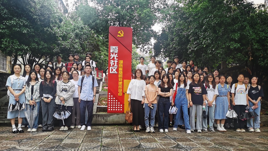 ▲ 学生在雨湖区洗脚桥社区见习合照