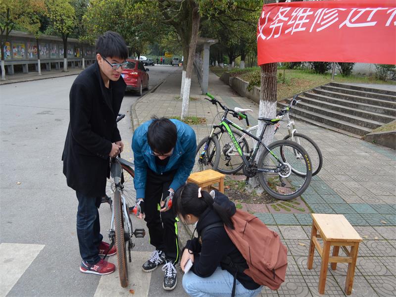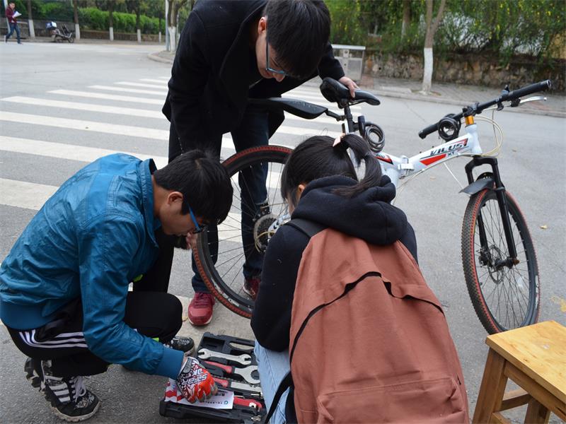 志愿团联合极速自行车协会于3月12日上午10时至下午16时开展义务维修自行车活动。 为方便同学,我们在南北校共设两个修理点,分别处于南校美食广场、北校电信路口,每个修理点均安排了服务同学、修理自行车的志愿者。“我们校园大,同学多,南北通勤上课离不开自行车,所以活动刚开始的时候负责修理的同学都忙得不亦乐乎,大家都觉得这种修理活动是想他们所想、急他们之所急。”志愿者刘思翔与记者这样说到。 修理点吸引了大量同学过来,他们纷纷把自己的“爱车”拿来,补补车胎、矫正矫正龙头把手,“我们消费能力有限,经常买二手车,难免不适用,这样的活动真好”,一个女生腼腆地说。 色色动漫