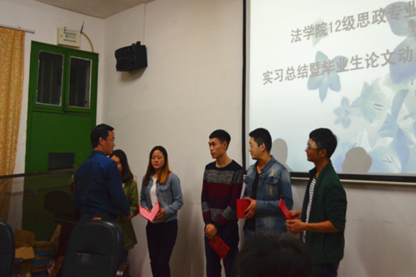 副院长胡正昌、系主任毛小平、带队老师凌应生以及2012级全体思政专业实习生参与会议。 胡正昌院长对此次教学实践活动给予了高度评价,希望在座学生都能成为教育行业新一代的引路人,并就后期的学习事宜提出了三点要求:一、希望同学们积极配合老师,顺利完成学业;二、要与老师多沟通、交流,做好毕业论文;三、努力明确人生规划、实现自己的目标。随后,凌老师就实习工作做了总结,表扬实习生们在这一阶段态度认真、纪律严明、进步显著、意志坚定,同时也明确地指出存在的不足之处,望其改正。毛老师则强调了毕业论文准备中的注意事项,规定了上交时间,指明写作方向。 大会最后,胡教授为优秀实习生颁发了荣誉证书 ,表彰他们在实习工作中的出色表现。 (责任编辑:admin) |
