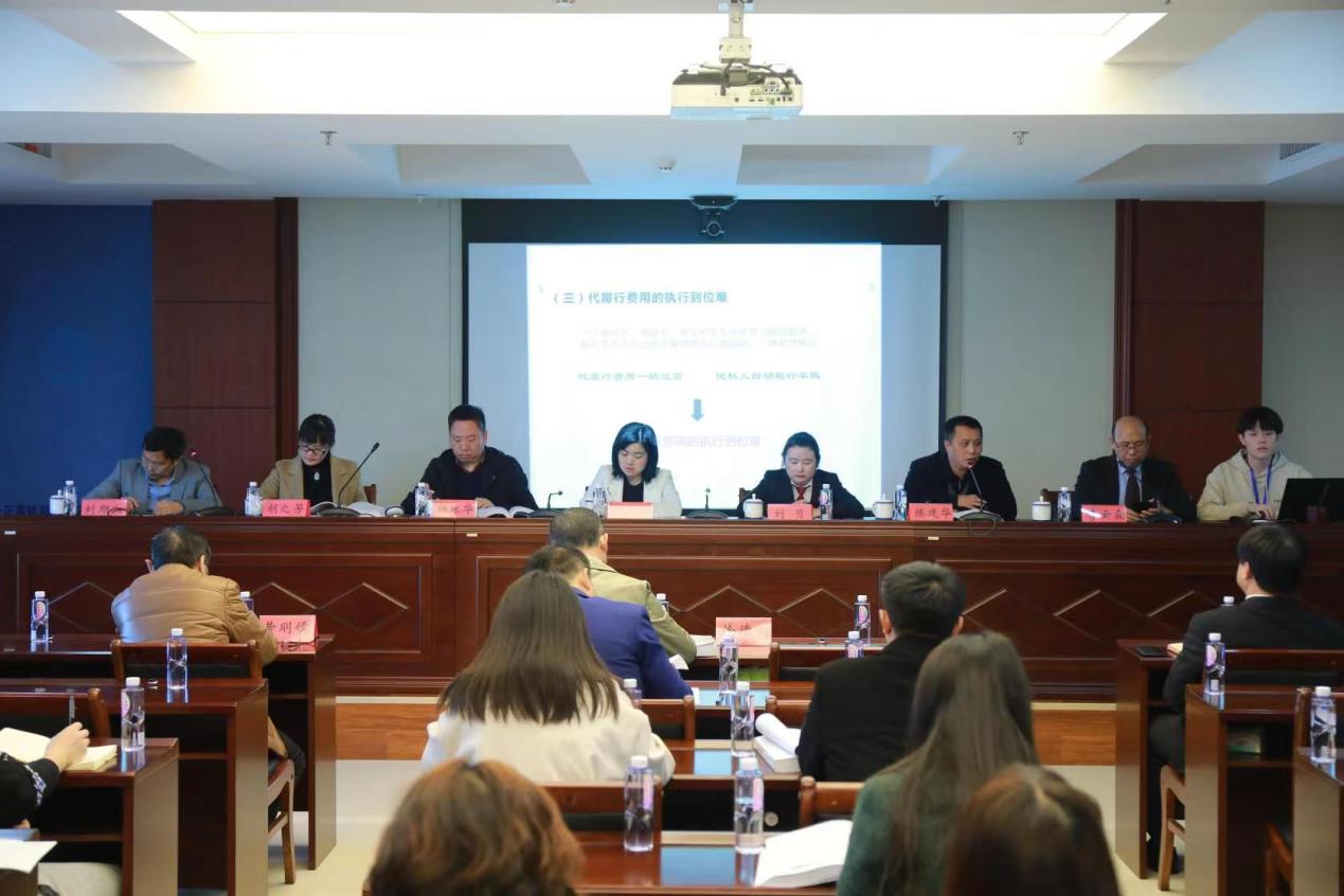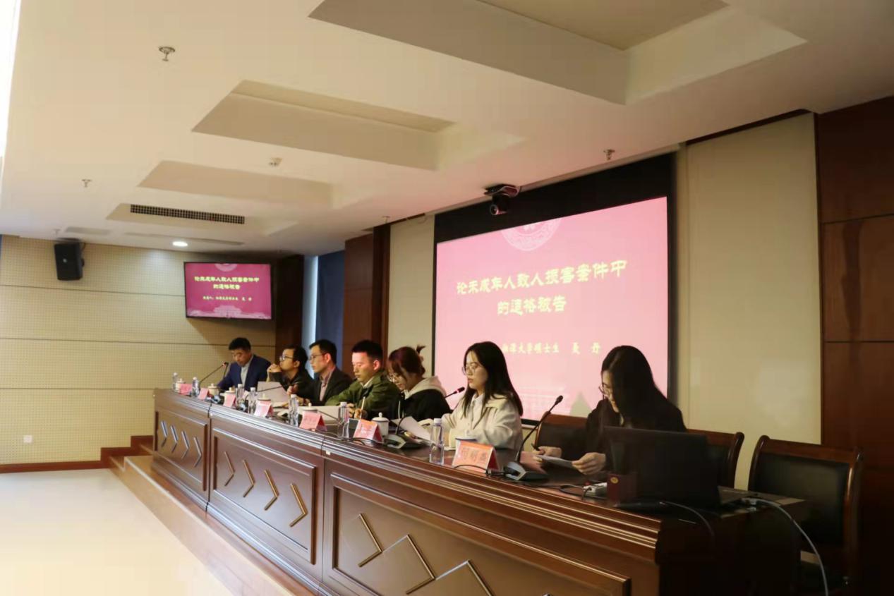 的研究生闫明燕同学,报告的题目是《合同借贷领域典型案例研究》,闫明燕同学从3个典型的借贷案件入手,对案件涉及的“后让与担保”的问题进行了性质界定和理论研究。第二位报告人是来自湘潭大学的研究生聂丹同学,报告的题目是《论未成年人致人损害案件中的适格被告》,聂丹同学从未成年人的责任能力、监护人责任适用原则和监护人责任的性质等方面对《民法典》第1188条进行法理分析。第三位报告人是来自中南林业科技大学的研究生张漾北同学,报告的题目是《催收非法债务行为的刑法规制》,张漾北同学通过对26个催收非法债务行为相关的案例样本进行分析,提出研究此类案件需要对罪与非罪、此罪与非罪进行甄别。第四位报告人是来自长沙理工大学的研究生罗官正同学,报告的题目是《挂靠情形下施工企业工程款支付风险及其法律保障》,罗官正同学通过对最高院判例观点进行整理,认为发包人直接向挂靠人支付工程款时,被挂靠人可以直接向发包人起诉请求其支付工程款。随后湖南师范大学法学院的赵冠男博士和湘潭大学法学院的王译博士对四位研究生的发言进行了精彩的点评,同时就挂靠问题和未成年人致人损害问题提出了不同的见解。